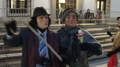 Previamente, la Plaza Mayor se fue llenando de gente, algunos disfraces, máscaras y también amenizando la Asociación Musical "Cristo del Valle".
