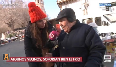 Por este motivo, un equipo de reporteros del programa de CMM "Ancha es Castilla-La Mancha", nos visitaron nuevamente (ya lo han hecho en varias ocasiones) en la fría mañana del 1 de marzo, donde alcanzamos los -7º negativos (hemos tenido días incluso más fríos) para charlar con varios vecinos y comerciantes del mercadillo, así como nuestro vecino Pedro, el pastor, Andrés, desde su churrería o Manolo Puyo, y el reparto a domicilio en furgoneta desde su panadería Puyo, todo enfocado a cómo se afronta el frío en Tembleque.