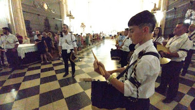 Destacar que todos los miembros de la Banda de Tambores y Cornetas llevaban un brazalete negro, en señal de duelo por el reciente fallecimiento de nuestro querido paisano Toñín, fundador de la Banda, que ahora dirige nuestro joven paisano Miguel de las Heras, músico, además de ser el Concejal de Cultura y Festejos.