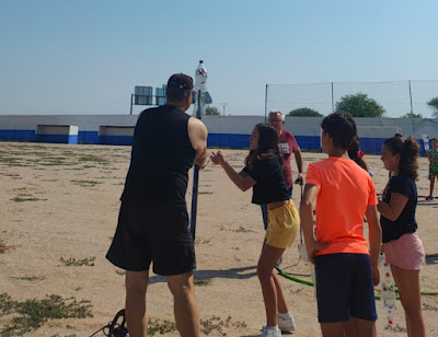 Un taller didáctico donde los más pequeños aprendieron a construir estos curiosos cohetes, con botellas de plástico de refrescos ya usadas, para posteriormente poner en práctica el lanzamiento al aire libre, en el campo de fútbol "La Serna", tras unos ensayos previos en la Plaza Mayor.